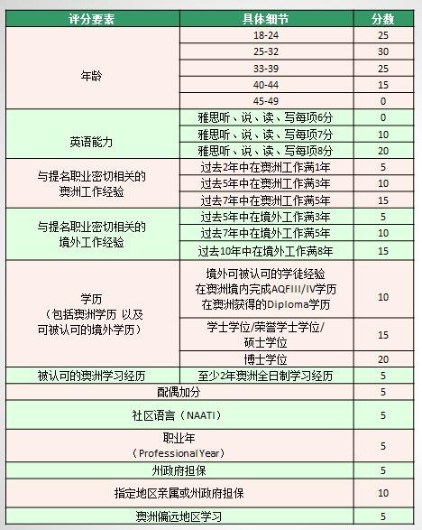 1. 分数的概念。澳洲移民局采用一个EOI打分表(见下图),根据里面的情况,对应自己的分数就可以打分了。